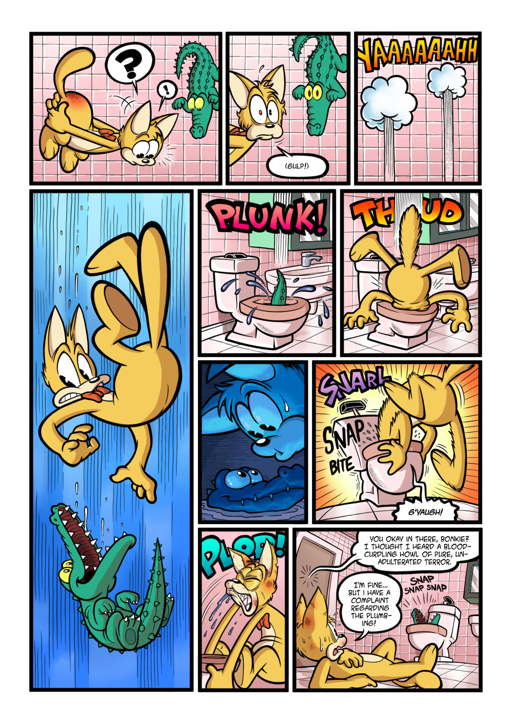 I'm always a bit worried about people visiting this site and coming upon a page like this one, which without the proper context probably looks pretty odd! Heck, the main protagonist is just idly floating in mid-air on the very first panel... That's usually the type of problem I'm talking about when I say certain sequences these stories are a better fit for animation than they are for a static medium.